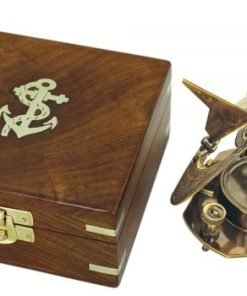 Слънчев часовник в дървена кутия, месинг, Ø: 11см