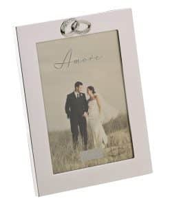Посребрена фоторамка Amore с кристални пръстени, 13х18 см