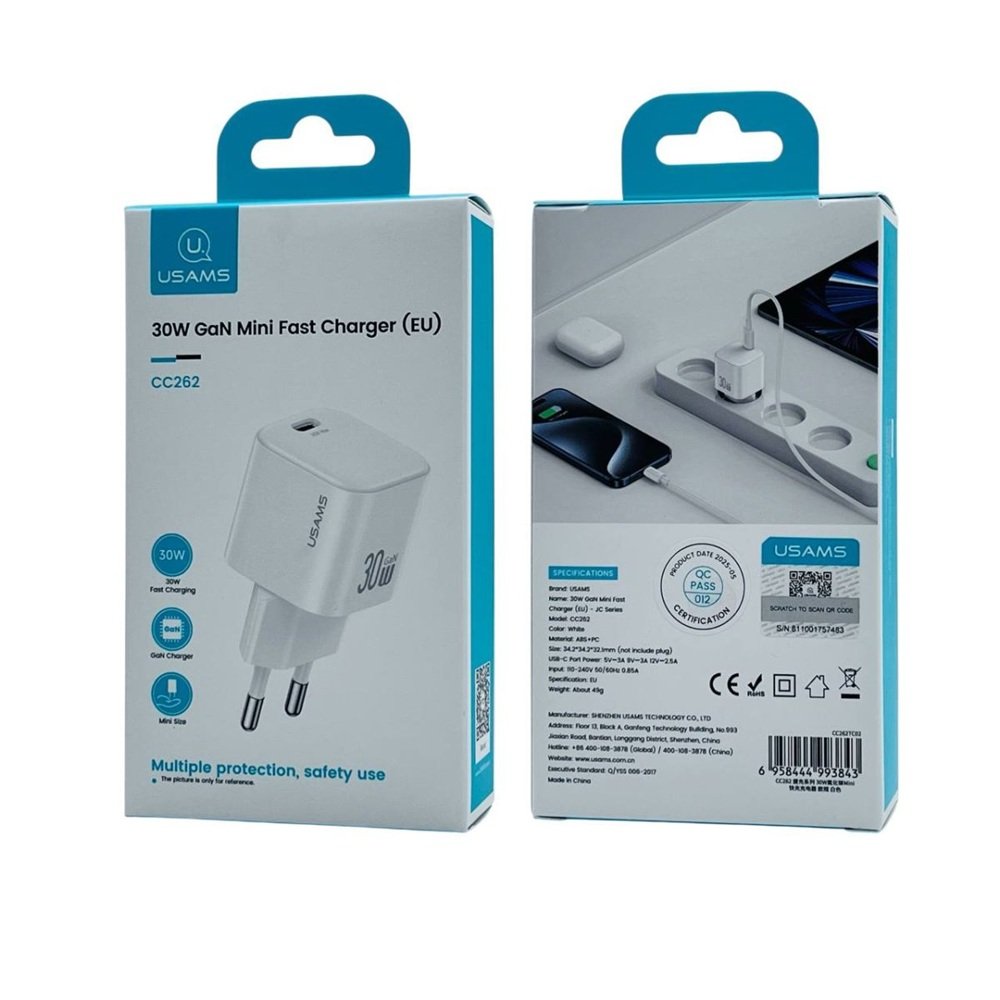 Бързо зарядно устройство USAMS USAMS US-CC262 USB-C 30W GaN FAST CHARGE, бяло