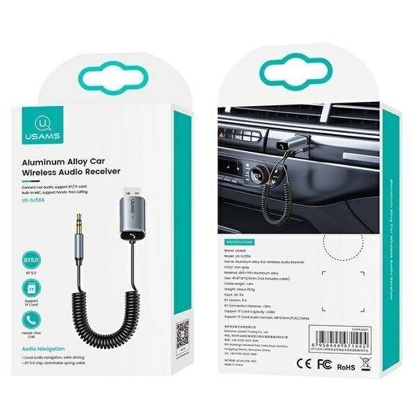 USAMS US-SJ504 Bluetooth аудио адаптер, който позволява безжично възпроизвеждане на музика, навигационни съобщения и телефонни обаждания по радиото на колата без Bluetooth модул.