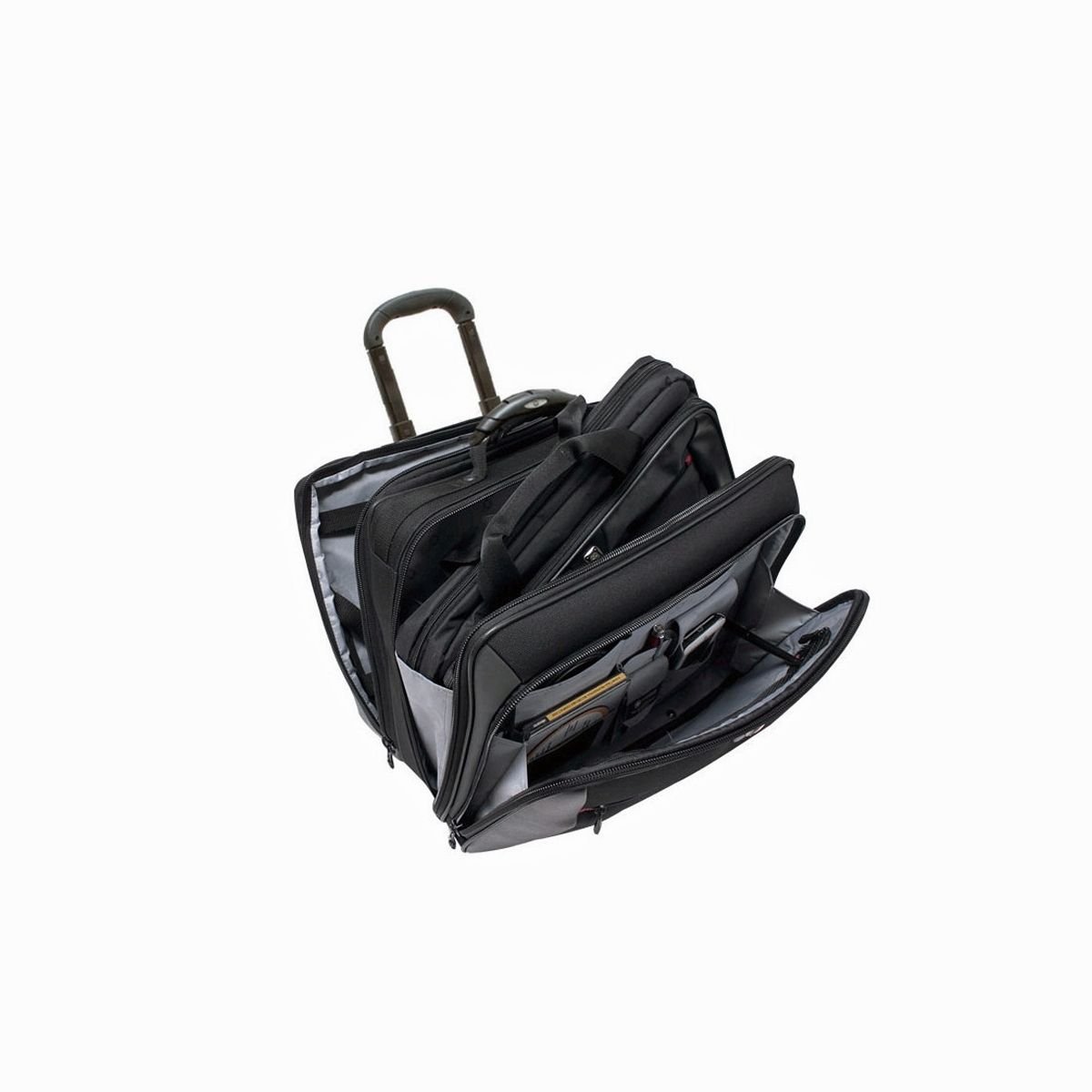 - Pass-Thru система на чантата за лаптоп за прикрепяне към телескопичните дръжки на основната чанта или към други куфари с колела