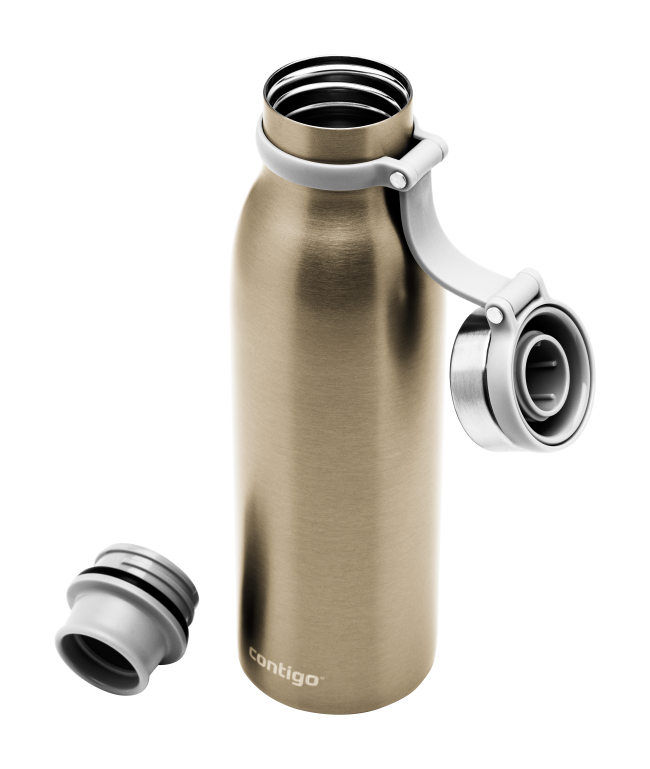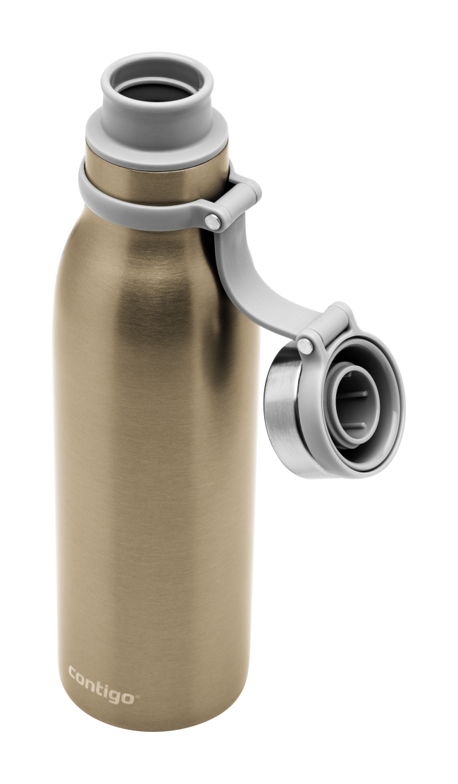 Със своя приятен метален цвят може да си помислите, че вакуумно изолираната бутилка за вода Contigo Couture THERMALOCK™ от неръждаема стомана е част от художествена галерия. Но изчакайте, тази термо бутилка също така поддържа напитките студени до 24 часа или горещи до 10 часа.