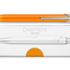 Автоматичната химикалка Caran d' Ache 849 Pop Line Collection е с оранжев цвят (с металически отблясък) и познатата и непроменена шестоъгълна форма на алуминиевото тяло, но в нови ярки и индивидуални цветове.