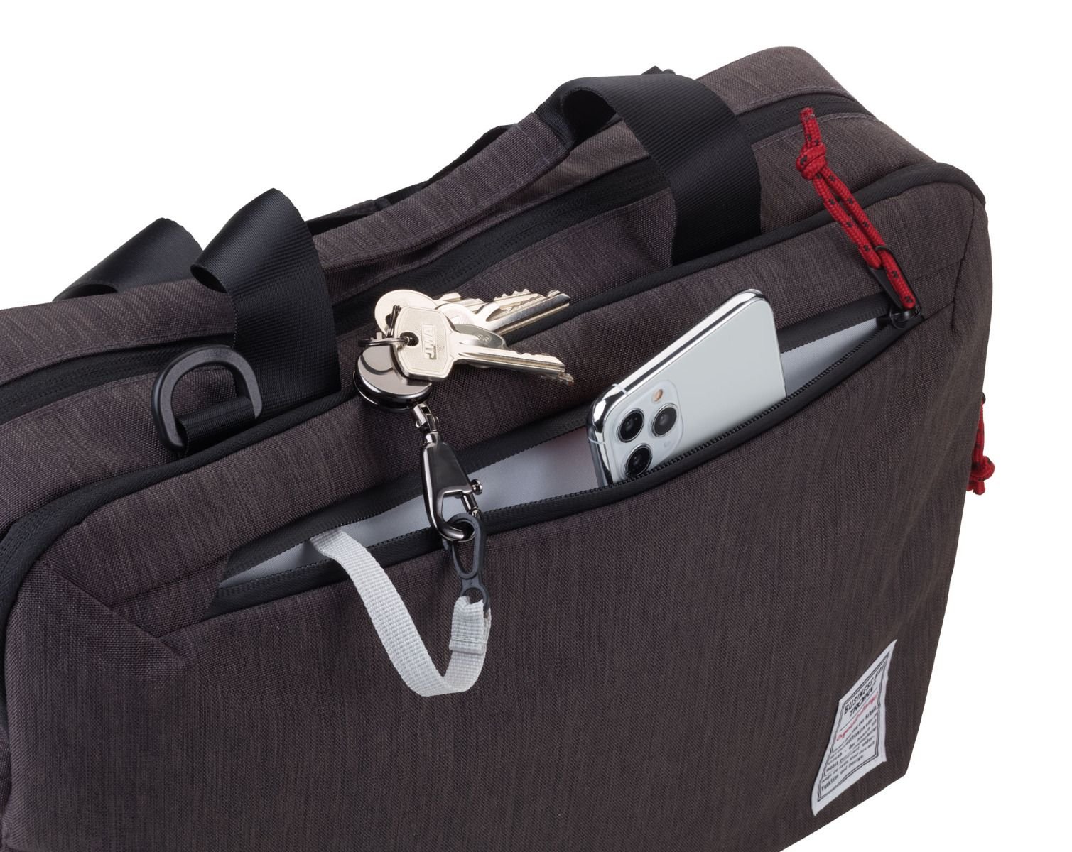 Чанта за лаптоп, документи + електронни аксесоари. Основно отделение за папки А4, лаптоп (до 15.4``), подплатено отделение за таблет + преден джоб с велкро закопчаване, страничен мрежест джоб за бутилка/чаша, 3 процепени джоба, преден джоб с цип : 1 защитно отделение (за RFID чипове) + 2 бримки за писалки + процепен джоб, преден джоб за мобилен телефон, портфейл и т.н. включително карабинер за закрепване на ключодържател, подвижна, регулируема презрамка, примка за закрепване към количка.