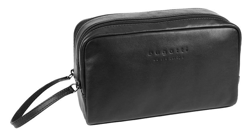 Чанта за тоалетни принадлежности Bugatti Corso, естествена кожа, черна