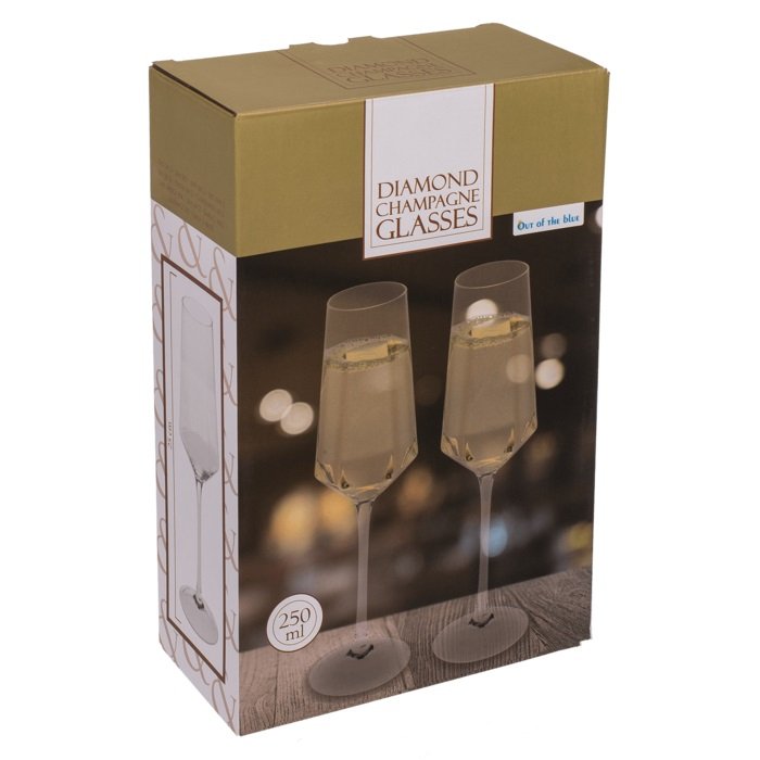 Две страхотни чаши от серията DIAMAND за шампанско и други пенливи вина.. Всяка от чашите разполага с вместимост 250 мл. Чашите се предлагат във впечатляваща подаръчна кутия. Тези изискани чаши са идеалният аксесоар за специални поводи и моменти, добавяйки елегантност и стил на всяка събиране или празнуване на специални празници и поводи.