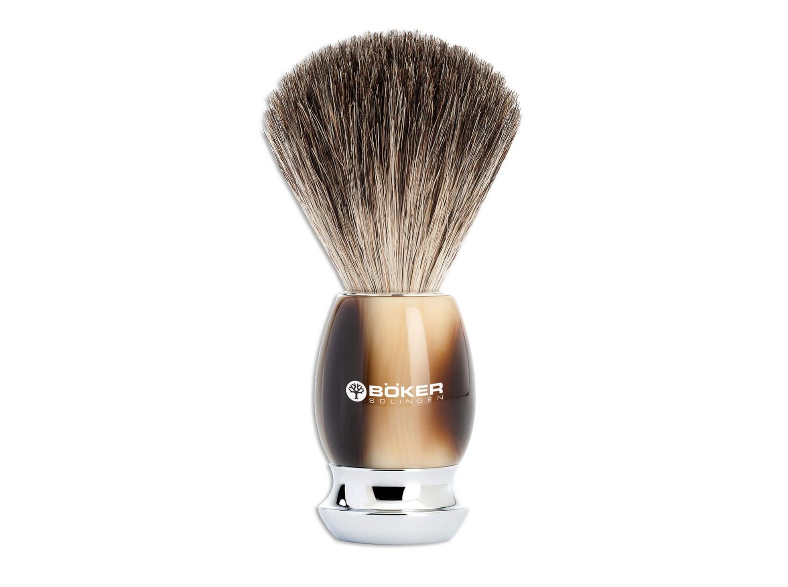 Допълвайки оригиналните Premium бръсначи на фабриката за ножове Boker в Солинген, ние предлагаме и четка за бръснене, изработена от изискан естествен материал - еленови рога. Структурата на материала се променя от бяло до кафяво и тъмнокафяво. Изцяло ръчна изработка. Размер на пръстена L 23 мм, Размери: 37 мм x 102 мм