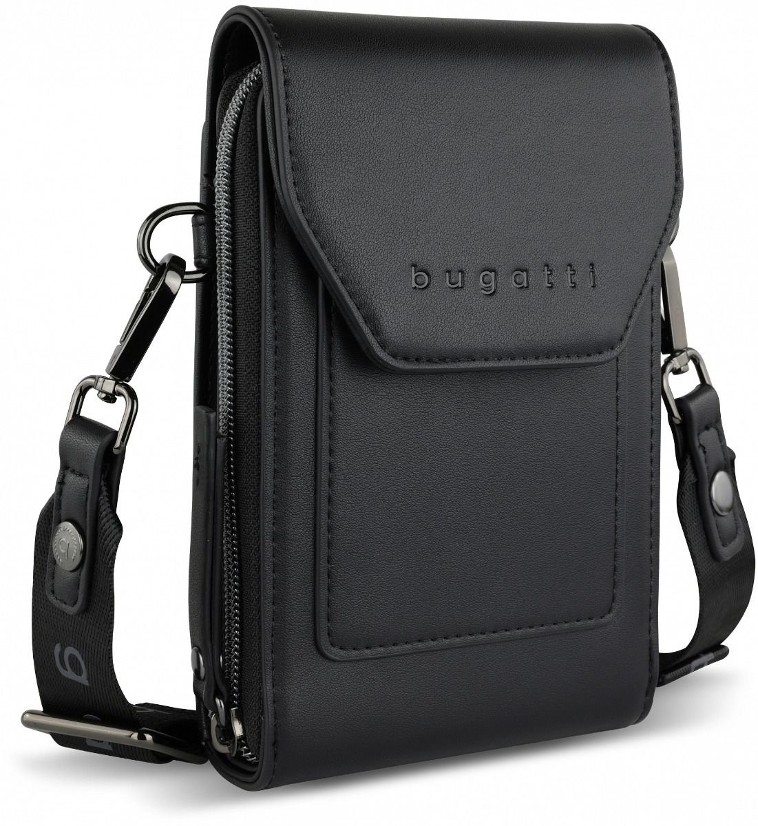 Стилна дамска чанта за носене през рамо - чанта за мобилен телефон с минималистичен дизайн от колекция Almata на световноизвестната марка Bugatti. Освен вашия смартфон, в тази чанта можете да съхранявате други неща, които ще ви трябват в движение – кредитни карти, ключове за дома, документи или пари в брой. Чантата за рамо от полиуретан има подвижна и регулируема по дължина презрамка, която лесно се адаптира към височината на вашата фигура, просто съхранявайте телефона и няколко кредитни карти и можете да отидете където пожелаете!