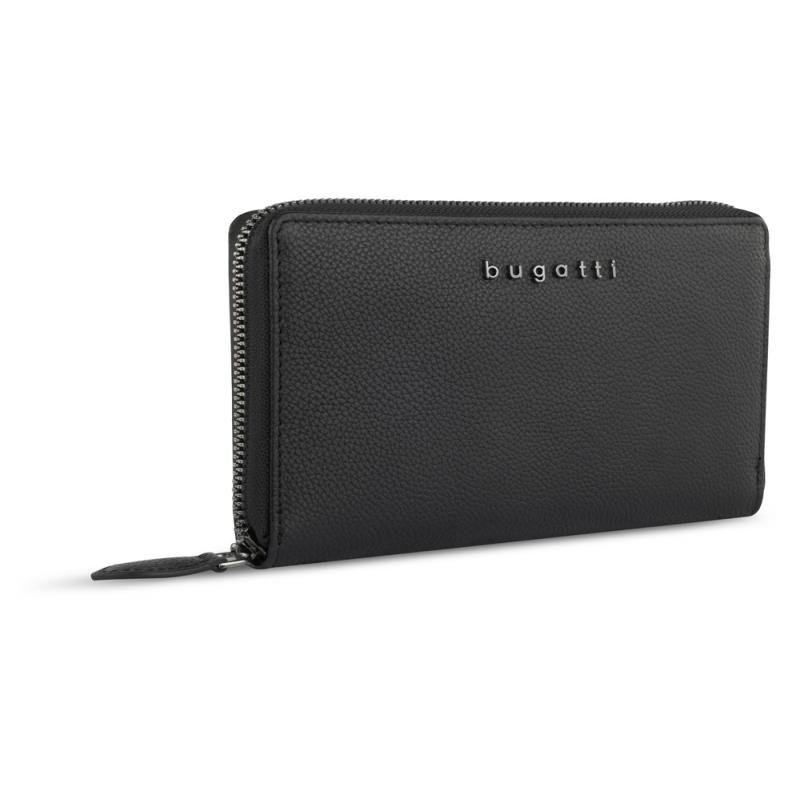 Дамски кожен портфейл Bugatti Bella Ladies Long Zip Wallet, RFID защита, черен
