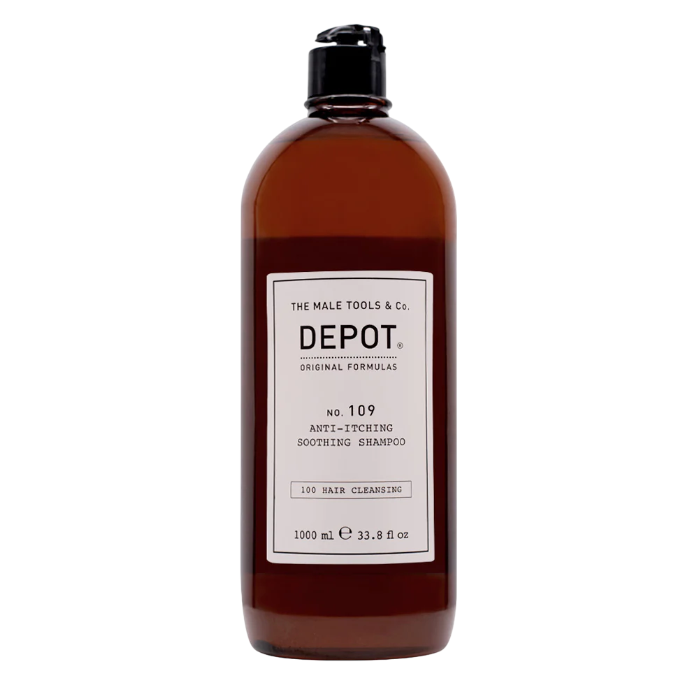 Дерматологично тестван и професионален шампоан за коса - "Depot, 100 Hair Cleansing No. 109, Hair Shampoo, Anti-Itching, 1000 ml". Този шампоан се отличава със специална формула, която предлага интензивно почистване и грижа за косата, като същевременно предпазва скалпа от сърбеж и дразнения.