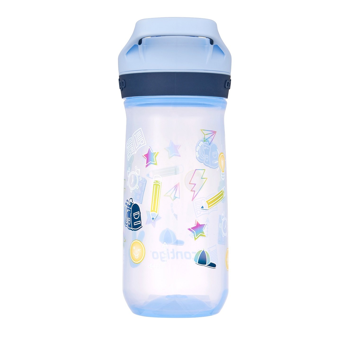 Когато дойде моментът за почивка и пиене, децата могат просто да натиснат големия преден бутон, капакът AUTOPOP™ се отваря и предлага широк отвор за удобно пиене с една ръка. По-малкият бутон за заключване гарантира, че капакът е затворен сигурно, предпазвайки от пропускане по време на пътуване.