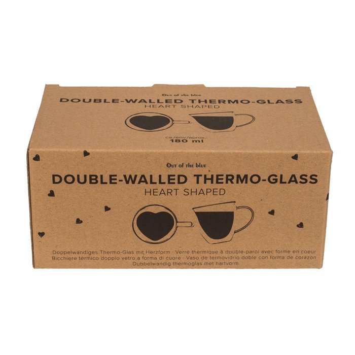 Комплект от 2 броя двустенни борсиликатни термочаши, сърце, 180мл