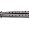 Новата версия на този обучителен инструмент е предназначена за всички ентусиасти и фенове на ножовете, които търсят начин да подобрят своите умения и да развият своите способности. Този инструмент е създаден специално за усвояване и усъвършенстване на умения. Острието на ножа е изработено от висококачествена неръждаема стомана и е специално проектирано да бъде затъпено, като това предоставя безопасност при упражненията и намалява и свежда риска от наранявания до нула. Острието е свързано към двата сегмента на дръжката чрез разкъсани винтове, които позволяват лесно затягане и регулиране след дълги периоди на тренировки. Класическата Т-образна греда също е включена и може да се завинти, осигурявайки допълнителна стабилност и удобство по време на упражненията. Допълнително, перфорираните чирени на дръжките от неръждаема стомана са предназначени да осигурят сигурен захват и контрол в ръката на потребителя, като предотвратят приплъзване и гарантират по-голями точност при изпълнението на упражненията. Този обучителен инструмент е идеален избор за всеки, който иска да се научи да работи с тоиз вид ножове или да подобри своите умения в тази област.