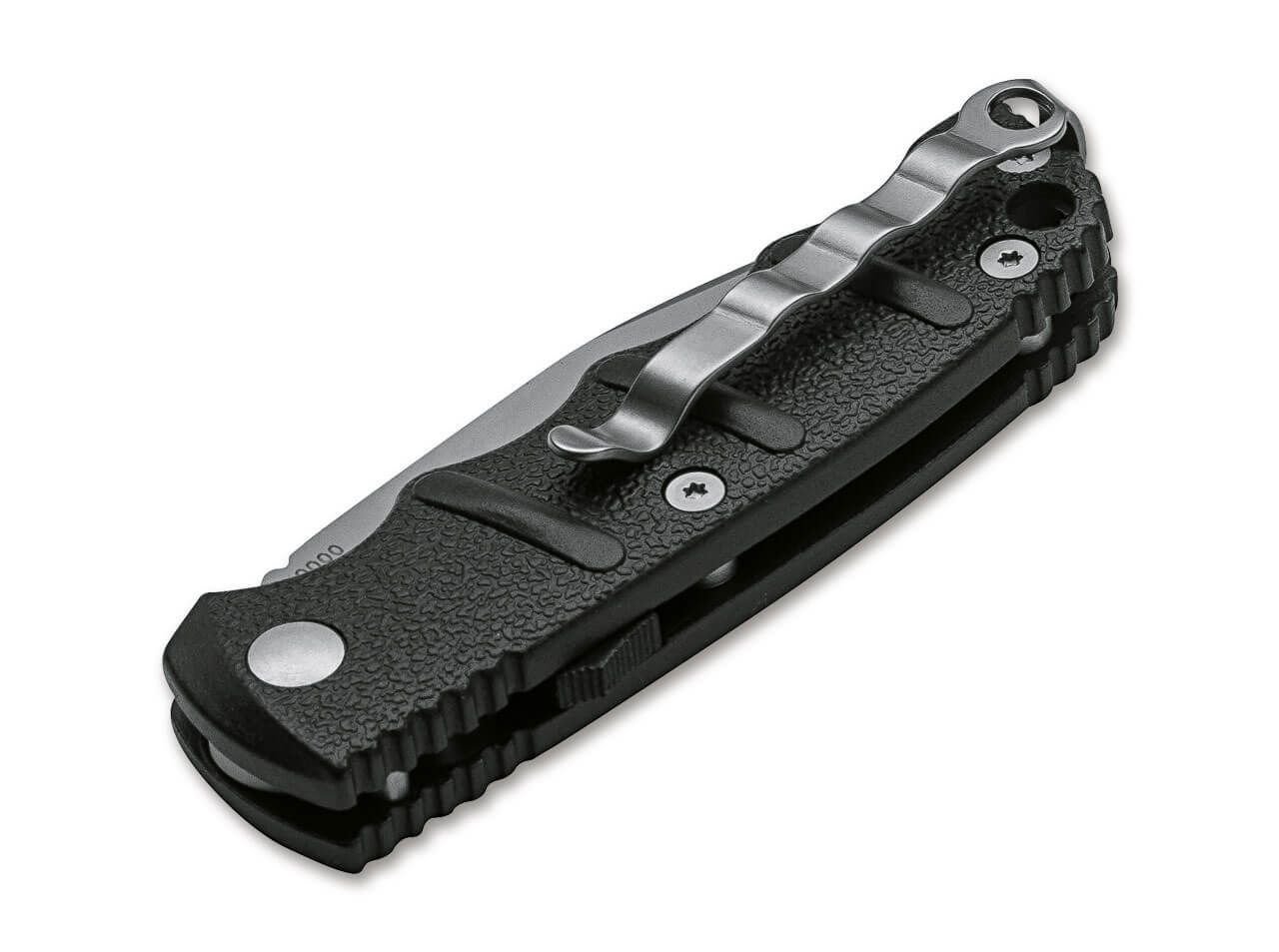 Boker Plus AKS-74 Mini е особено удобна версия на популярния нож от серията Калашников. Черните алуминиеви чирени силно напомнят на щика на известната щурмова пушка, повдигнатите структурни канали също осигуряват сигурен захват във всяка ситуация. Острието е изработено от неръждаема стомана D2 и може да бъде заключено. С отвор за въженце и практичен клипс, който може да се демонтира.