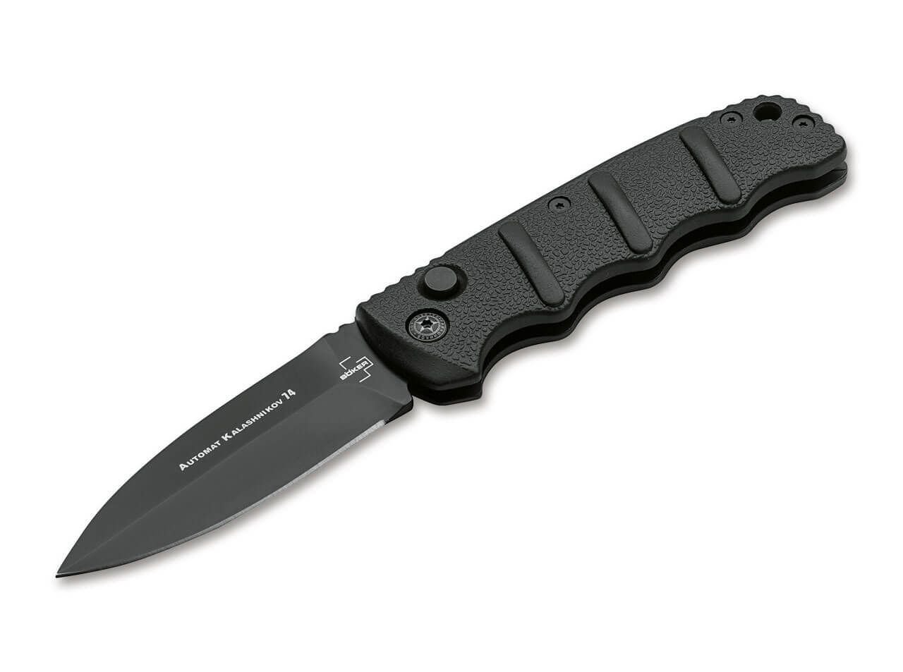 Boker Plus AKS-74 от серията Калашников със сигурност е един от най-популярните модели в нашата гама и е произвеждан в множество различни варианти през годините. Дръжката с черните алуминиеви чирени силно напомня на щика на прочутия щурмови автомат, а изпъкналите текстурирани канали също осигуряват сигурен захват във всяка ситуация. Копиевидното острие, също черно, е изработено от неръждаема стомана D2 и може да бъде заключено.С отвор за въженце и практичен клипс, който може да се демонтира.