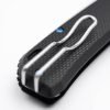 Наличието на здрава бутонна ключалка с допълнителен плъзгач осигурява допълнителна сигурност и контрол върху острието по време на употреба, значително намалявайки риска от нежелани инциденти. Следващото случайно отваряне на ножа в джоба на панталона е изключено, благодарение на предпазната скоба, която е включена в дизайна.