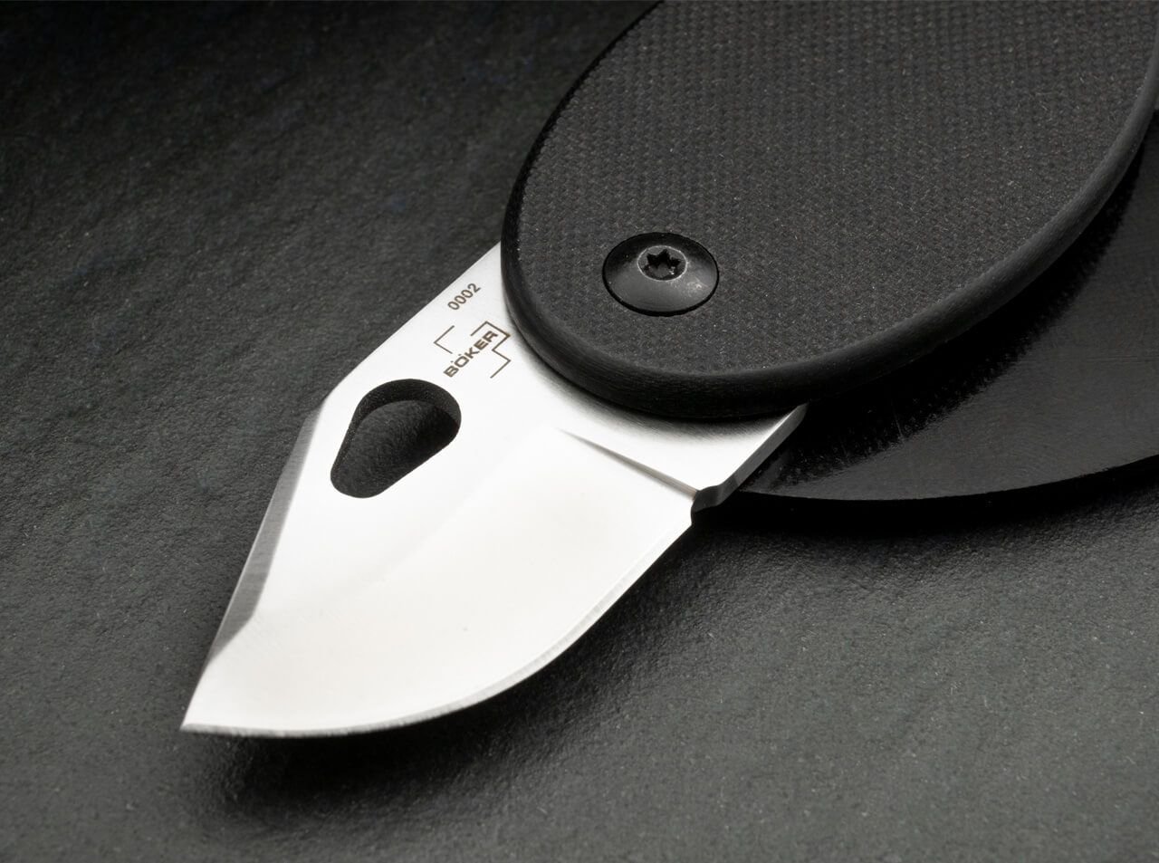 Известен със своите изобретателни дизайни, дизайнерът на ножове Джон Кубасек от Масачузетс отговаря на въпроса за кокошката и яйцето с необичайния и иновативен Boker Plus L'Egg. Удобният нож за врата, дължи името си на яйцевидната конструкция на текстурираните чирени на дръжката от композит G10, които напълно обхващат острието от сатенирана стомана D2 като защитна яйчена черупка, когато е затворена. Гениалният механизъм на страниците на дръжката, плъзгащи се една срещу друга, се застопорява сигурно с магнит. Лекият нож е снабден с практична верижка с топченца.