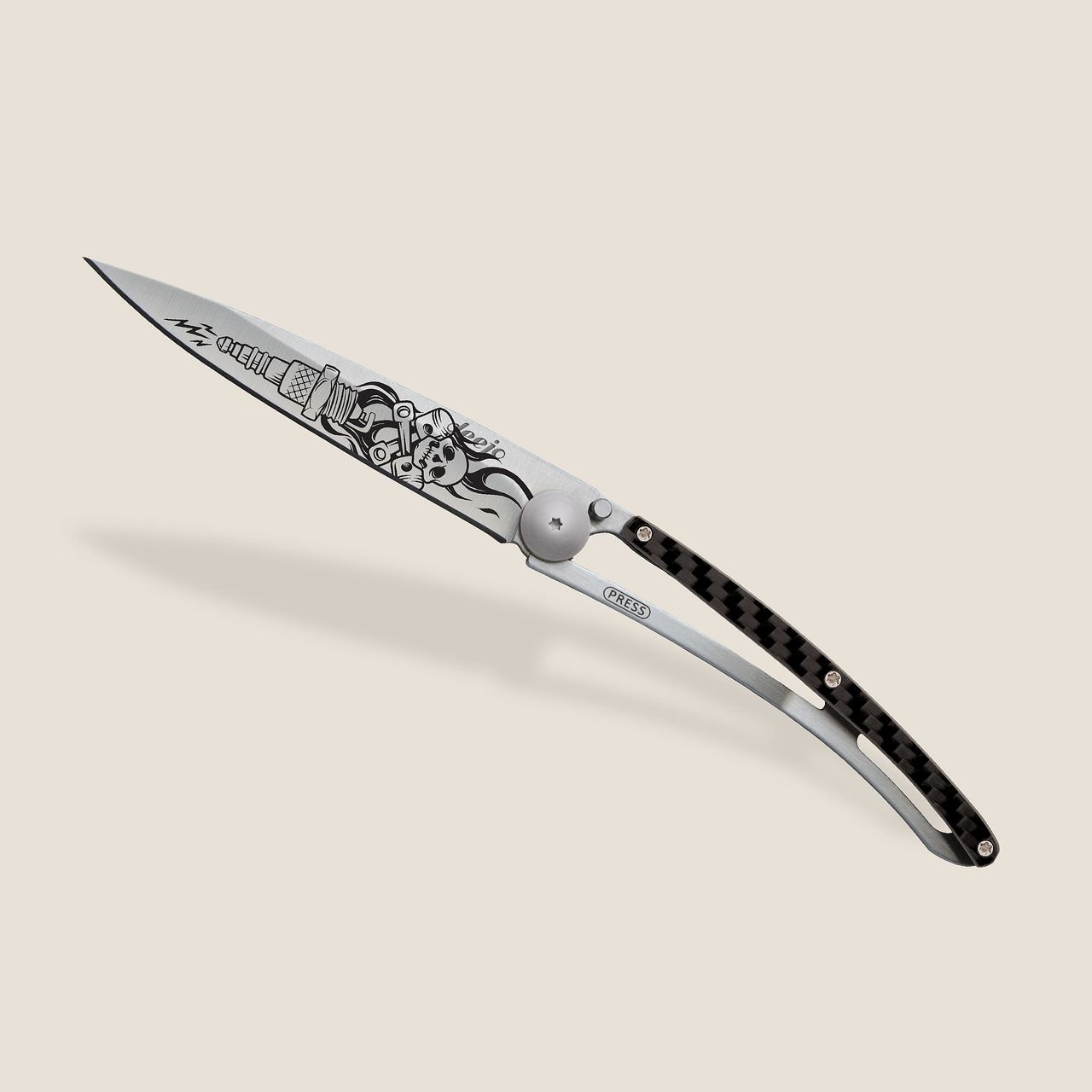 Джобният нож Deejo 37g, Carbon Fiber / Biker е перфектният инструмент за тези, които търсят стил и качество в едно. Със своите отличителни характеристики и вдъхновен дизайн, той ще бъде не само практичен помощник в ежедневието, но и модерен аксесоар за любителите на моторите. Изберете Deejo и се насладете на свободата и функционалността, които предлага! DEEJO на ТОП цена в Portmoneta.bg