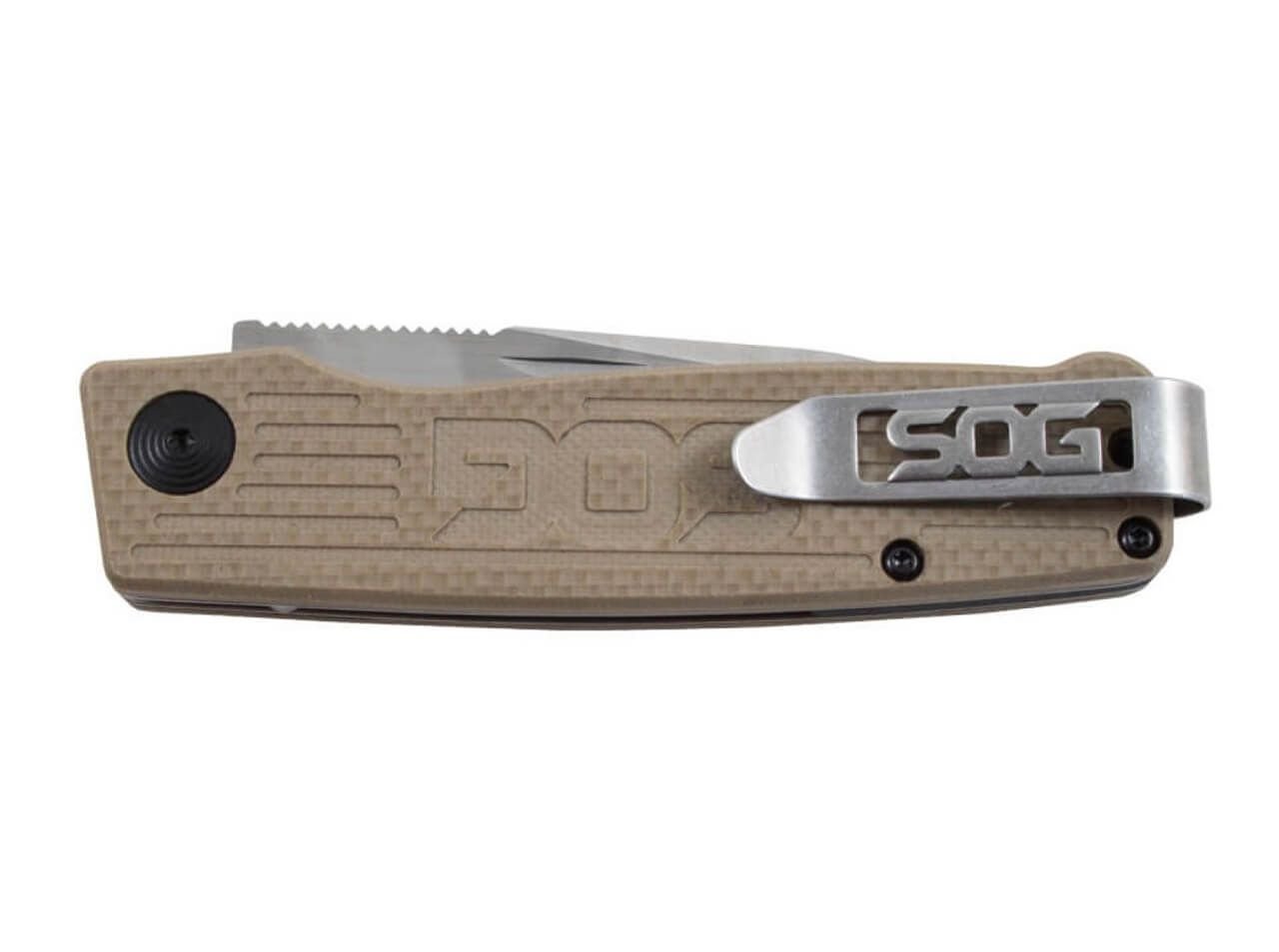 Комбинацията от традиционен Slipjoint механизъм с модерен дизайн все още е рядкост. SOG Terminus със своето сатенено острие, изработено от висококачествена стомана CTS BD-1, запълва тази празнина. Чирените на Coyote G10 и демонтируемият клипс хармонично допълват цялостният външен вид.