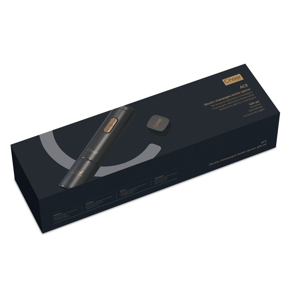 Електрически тирбушон за шампанско Cheer Moda Signature Ace, черен/бронз