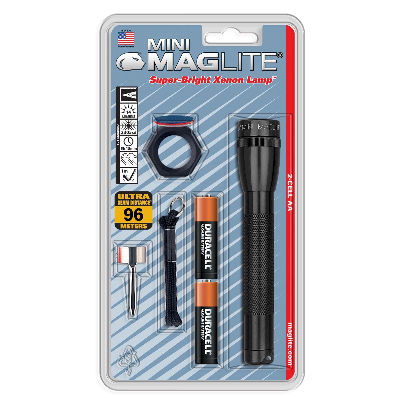 Фенер Mini MAGLITE®2-Cell AA черен промоблистер с филтри