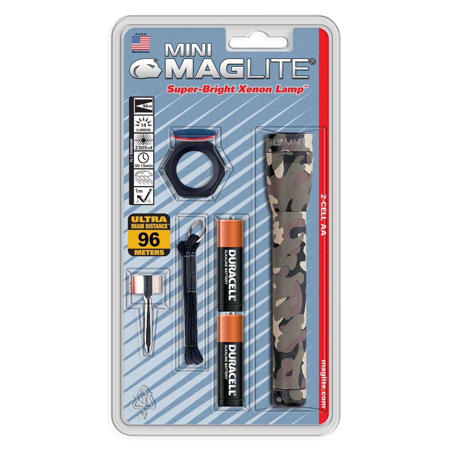 Mini Maglite се зарежда с две АА батерии и е фенер с пълна функционалност, ослепителен лъч светлина и красив дизайн. Този модел на Maglite се е превърнал в икона на класическия американски дизайн. Популярен е по цял свят със своята надеждност и издръжливост. Можете да го поръчате в предпочитан от Вас цвят.