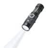 Фенер с въртяща се глава, многофункционален: работен/защитен/челник, 5 светлинни функции, предна светлина: 100% светлина + 50% светлина + 30% светлина, червена светлина, бързо мигаща червена светлина, светещата глава може да се върти до 90° за оптимално осветление, мини мощен светещ стик: 100% = 500 лумена, магнитна основа, SMD светодиоди, презареждащ се чрез предоставените USB-C кабел, индикатор за зареждане, включително лента за глава за функция челник, 800 mAh литиево-йонна батерия, щадяща околната среда, тъй като е презареждаема, алуминий, черен