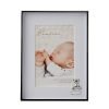 Сребърната метална рамка е със синьо паспарту и портретен отвор за самостоятелно излагане или окачване на стена. Украсена е със сребърна апликация на плюшено мече с кристално покритие в ъгъла на отвора.