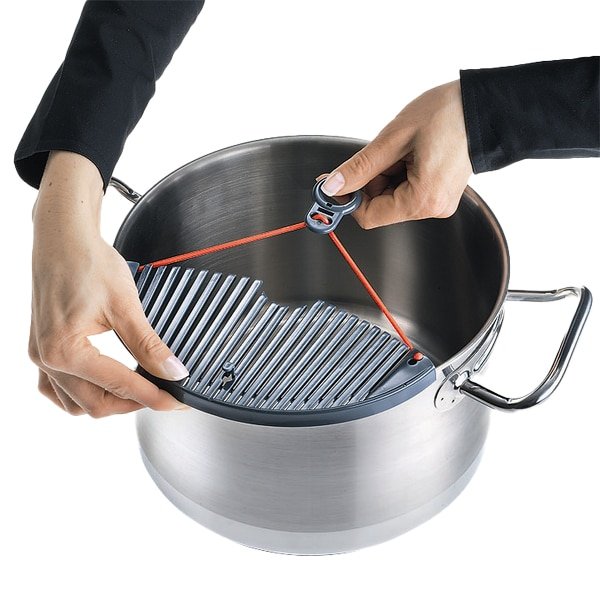 За бързо и лесно отцеждане на тестени изделия, зеленчуци, ориз и др. Може да се използва върху всички тенджери от Ø 18 до 24 см.