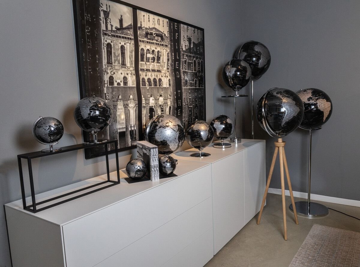Този глобус е идеалният пример за съвременно съчетание между дизайн и практичност. Той не е просто декоративен елемент, а функционален аксесоар, който добавя стойност към всеки интериор. Черно-сребристата цветова комбинация е модерна и стилна, подходяща за всякакъв вид помещения – от домашна библиотека до офис. Тя също така е лесна за съчетаване с различни цветови схеми, което прави глобуса универсално допълнение към всяка стая.