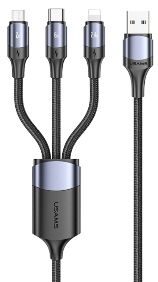 Кабел за бързо зареждане и данни USAMS SJ511 U71 All-in-one, 1.2м, черен