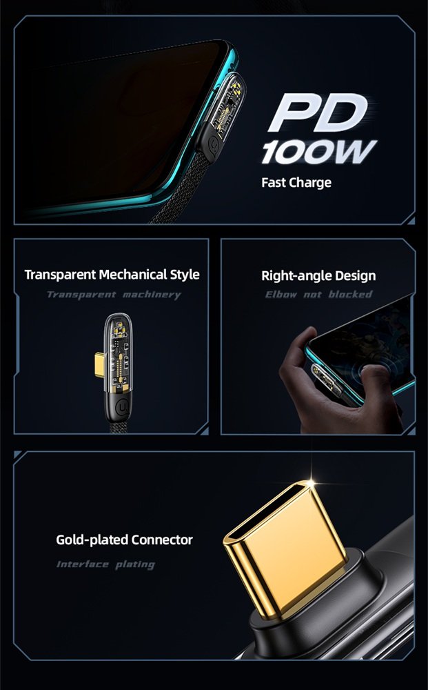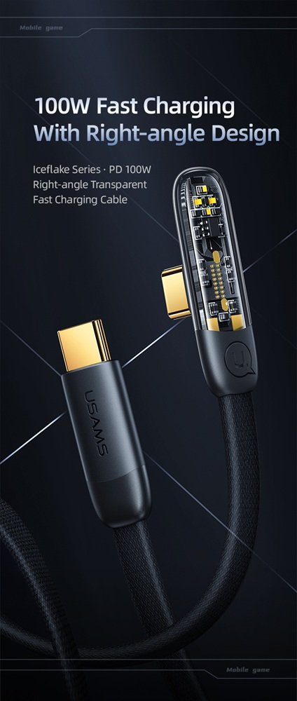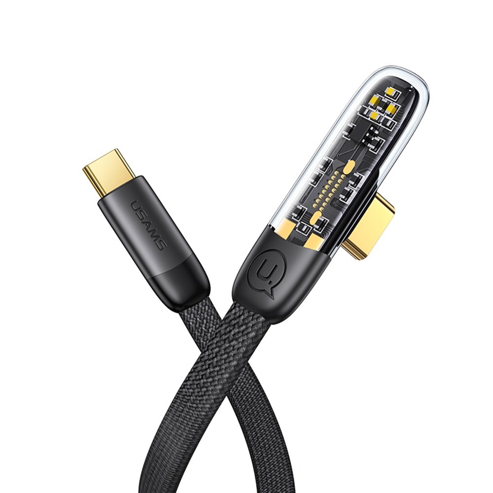 Кабел за бързо зареждане и данни USAMS Type-C To Type-C PD 100W Right-angle Transparent, 1.2 метра