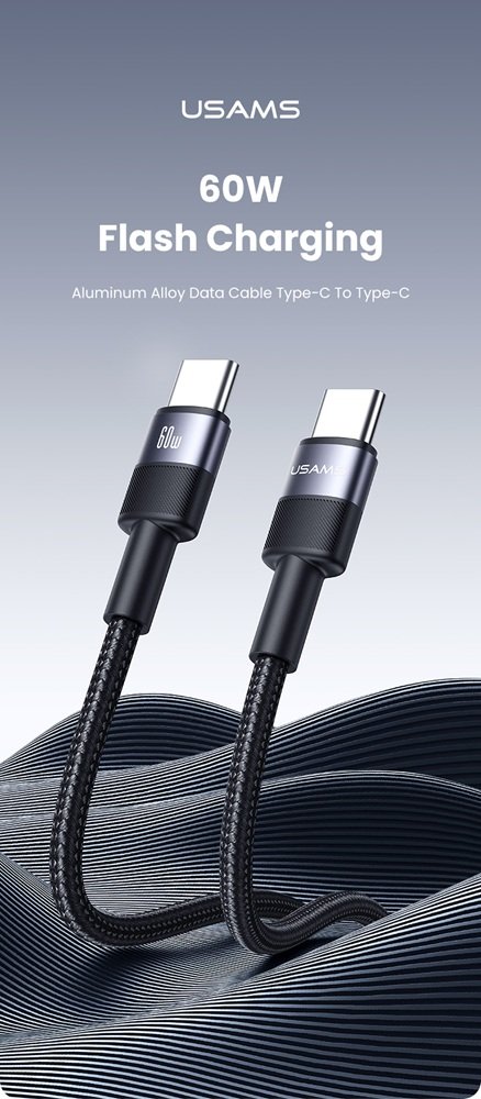 Кабел за бързо зареждане и данни USAMS US-SJ724 60W Aluminum Alloy Data Cable Type-C To Type-C 1.2 метра, черен