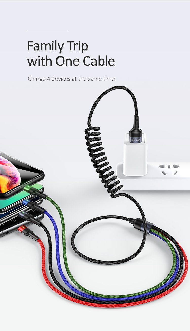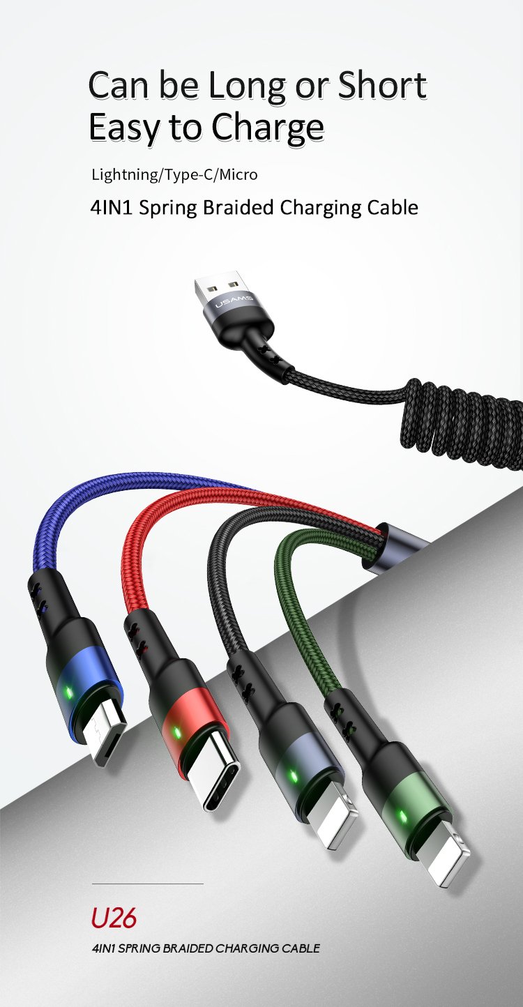 Кабел за данни и зареждане USAMS SJ349 U26 4in1, 1.5м, черен