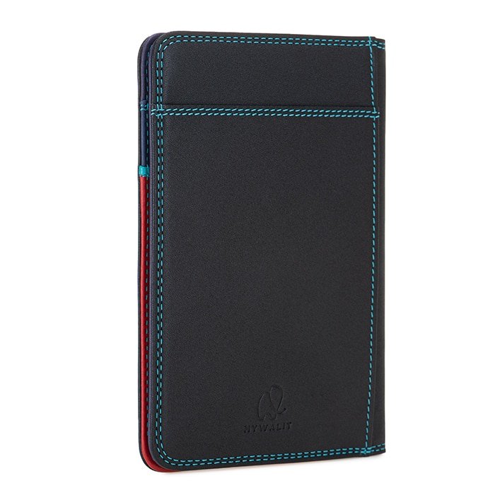 Пътувайте със стил, докато обикаляте земното кълбо с нашата цветeн калъф за паспорт и документи. Изработен от чиста кожа, той разполага с прозрачен джоб за вашия паспорт, страничен джоб за документи за пътуване и място за три карти.