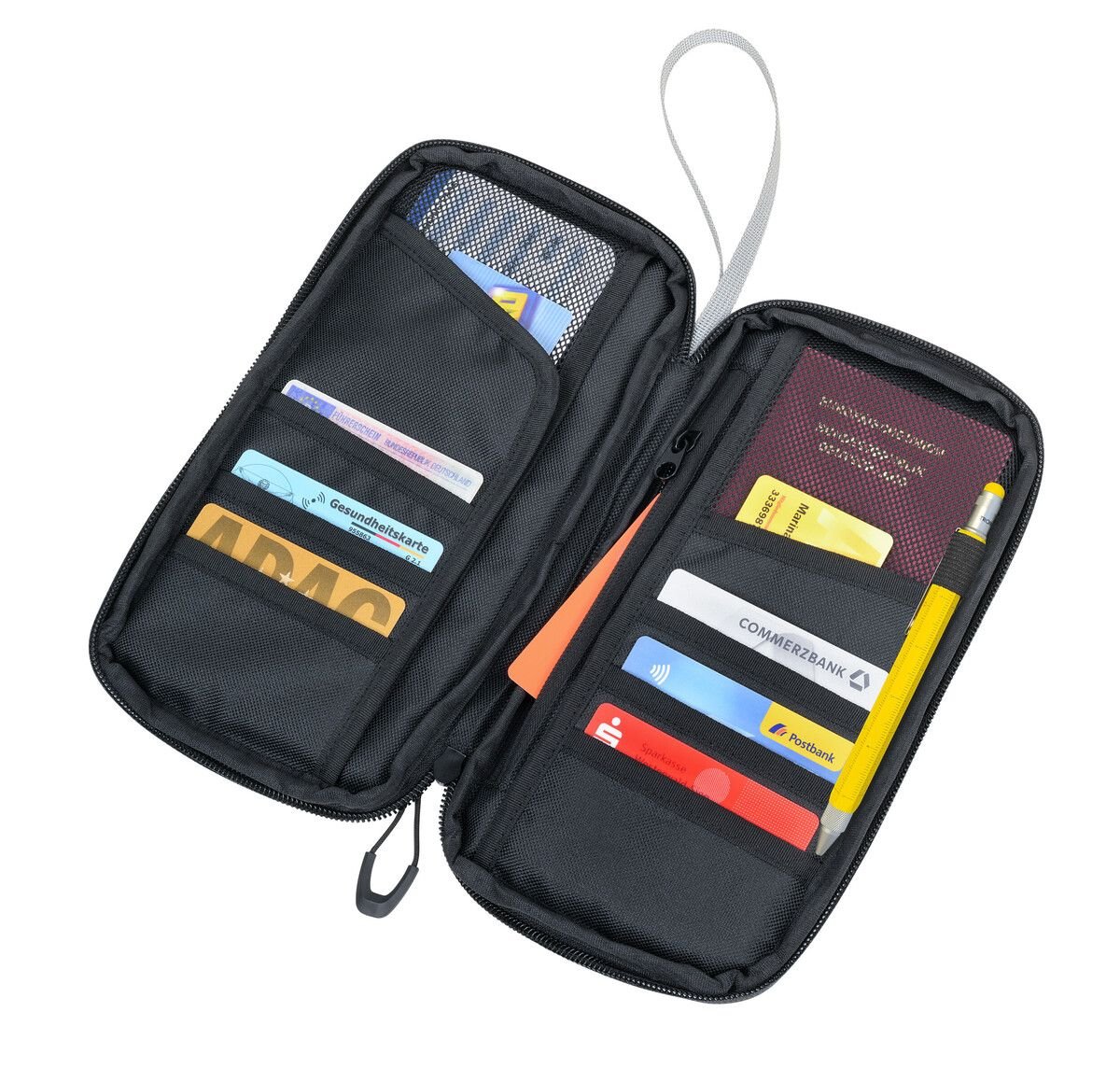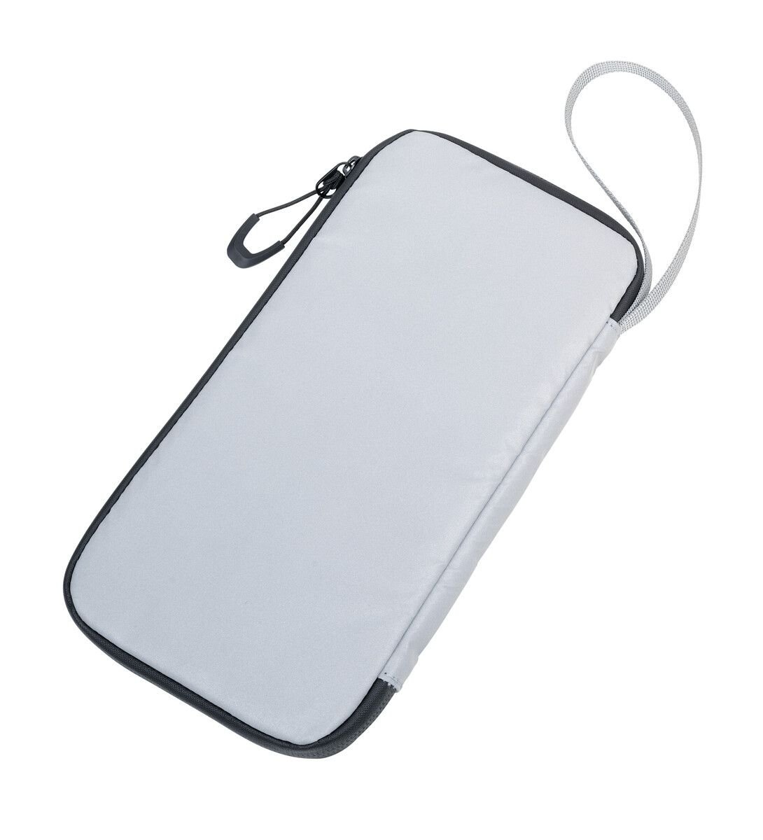 Калъф за документи за пътуване, с водоустойчиви ципове и каишка за ръка, силно отразяващ, преден джоб, подходящ за смартфон или паспорт, 11 вътрешни отделения за карти и документи за пътуване, халка за писалка, 100% полиестер, полиестер, сив