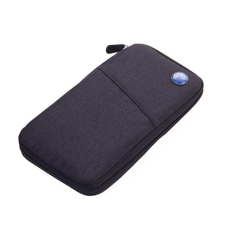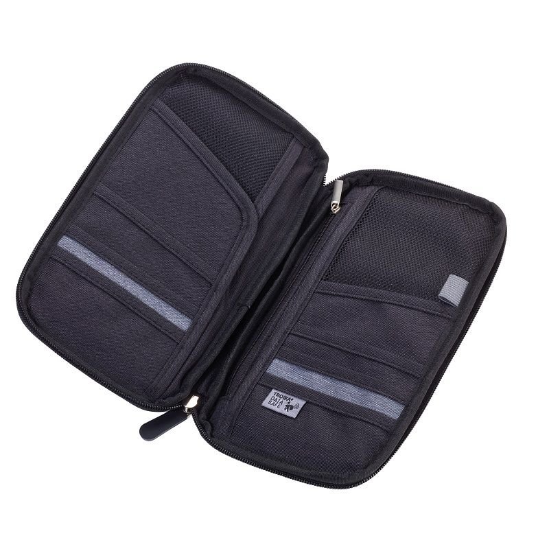 Калъф за пътни документи с RFID защита, затваряне с цип, 12 вътрешни отделения, място за химикалка,