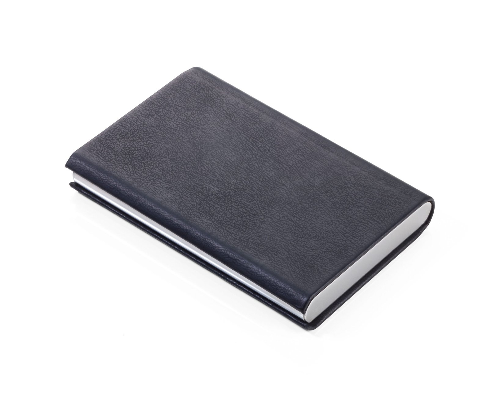 Калъф за кредитни карти с каишка за изваждане на картите. Има RFID скиминг защита за кредитни, лични и други карти с RFID чип. Магнитно закопчаване. Побира около 10 карти. Неръждаема стомана/изкуствена кожа, черен.
