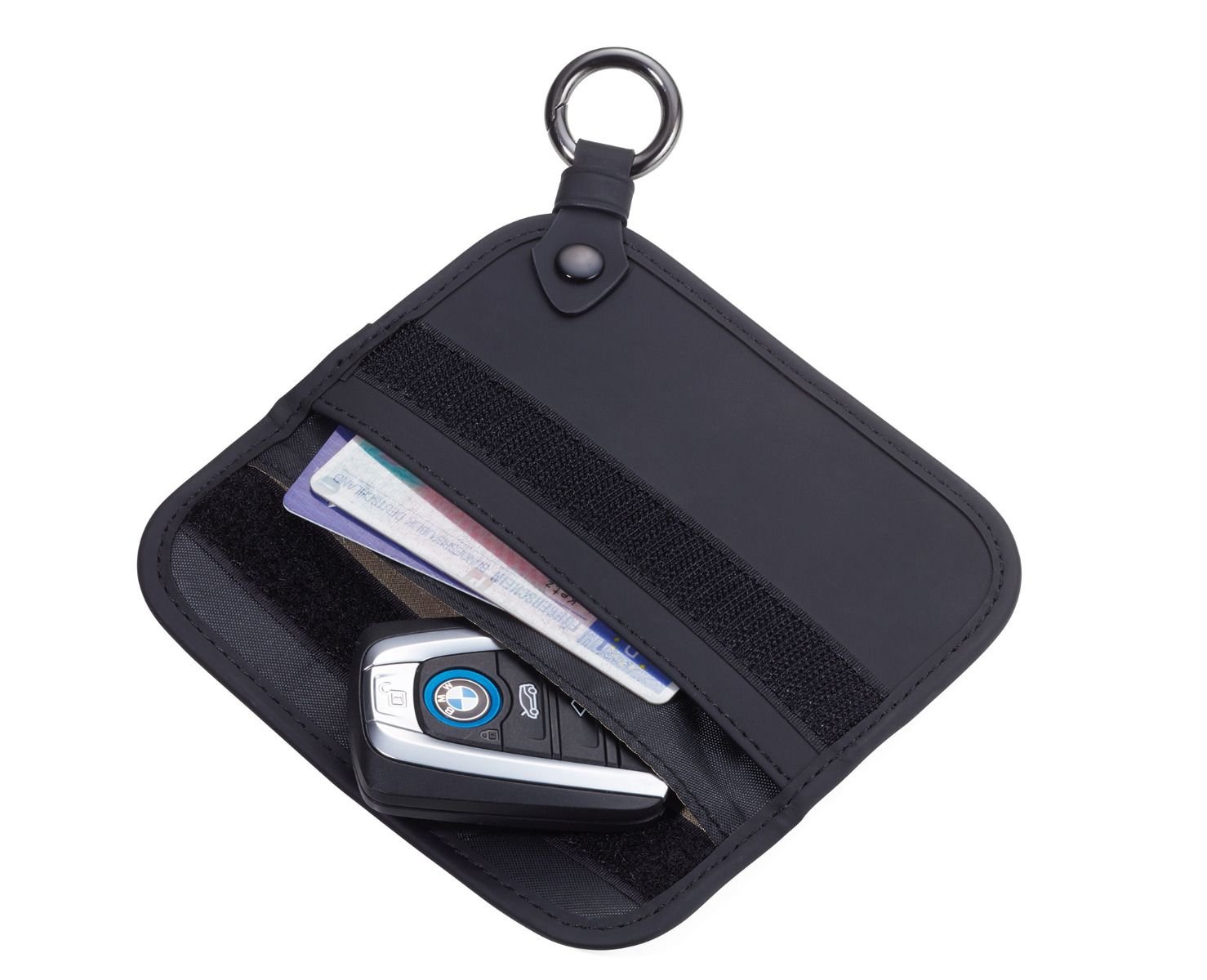 Калъф със защита за ключове за кола и всички други радиочестотни ключове с RFID и NFC чип. Две вътрешни отделения и карабинер. Велкро закопчаване.