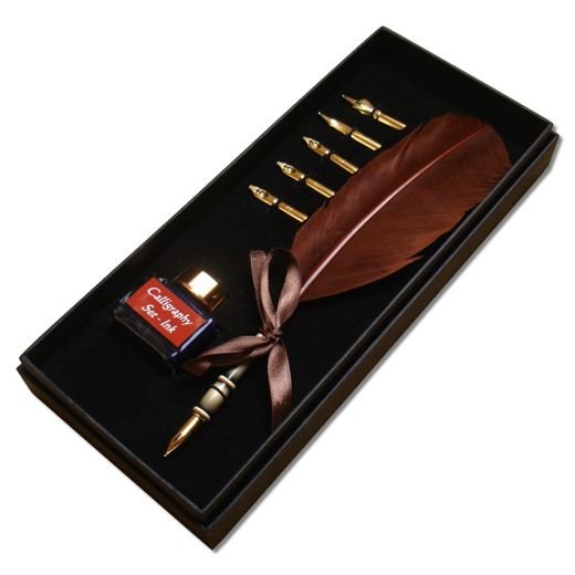 Писалка с истинско паче перо. Насладете се на калиграфското писмо и създайте собствени впечатляващи поздравителни картички, покани или писма с този невероятен подъръчен калиграфски комплект.