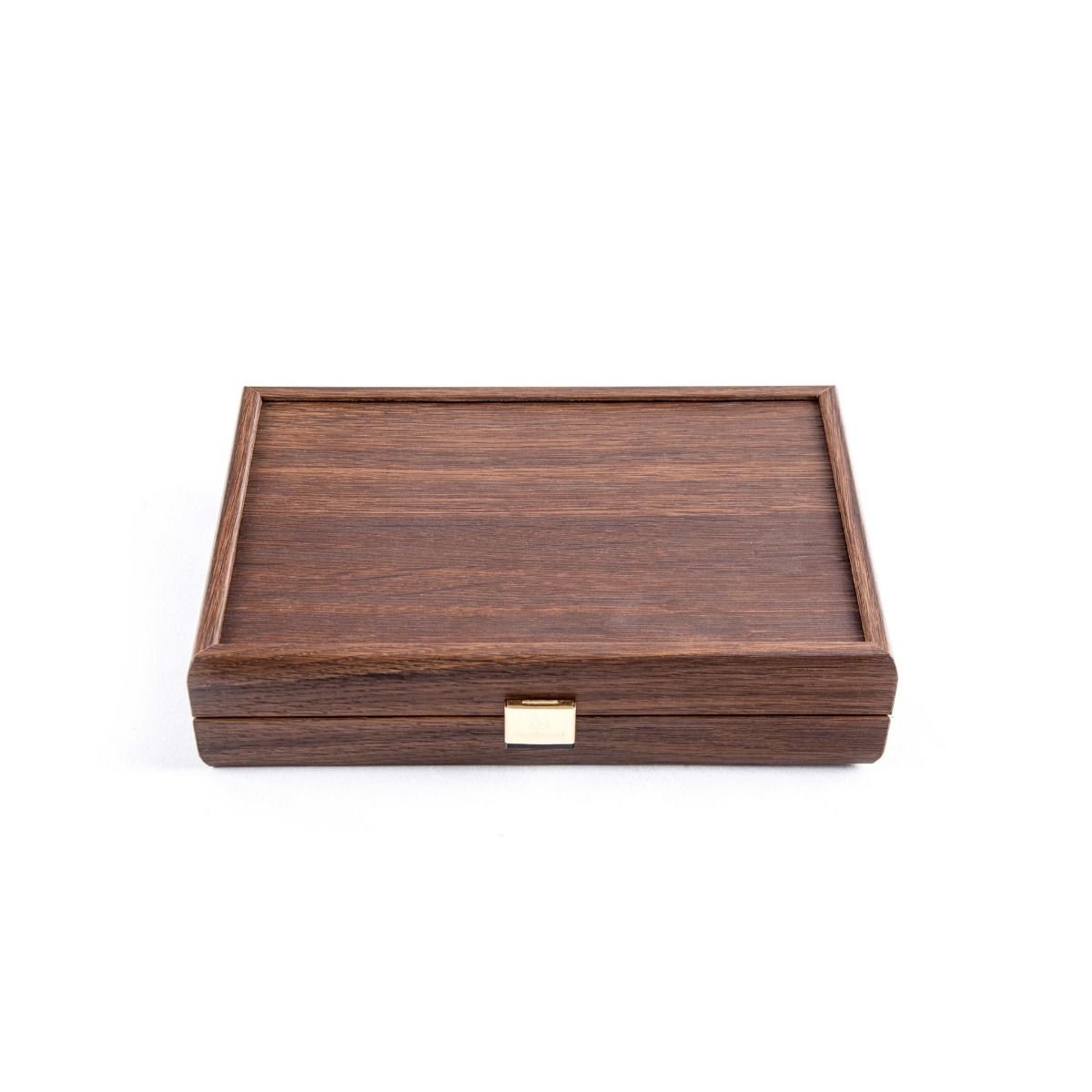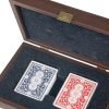 Карти за игра с пластично покритие в тъмно кафява дървена кутия.