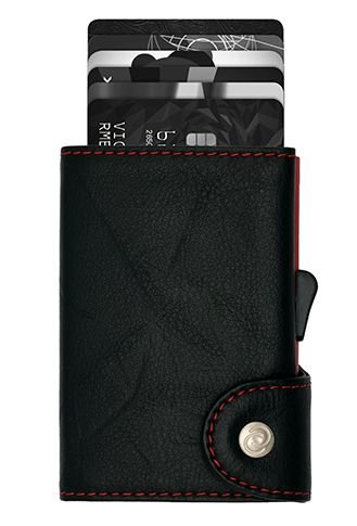 Картодържател C-SECURE с портфейл, Black Nero embossed/Red cardholder