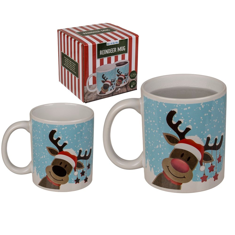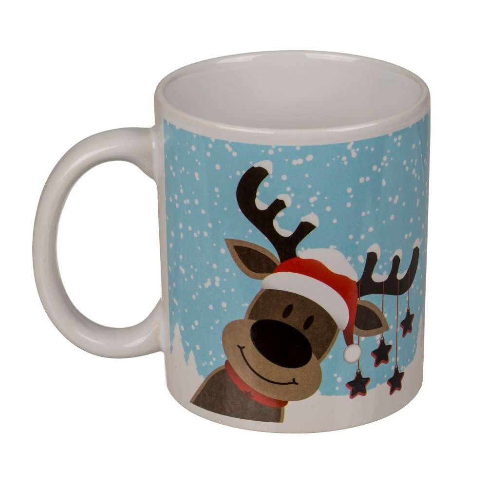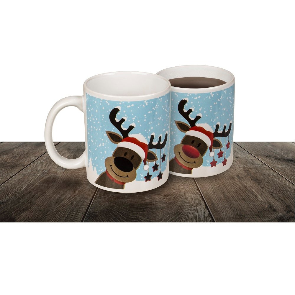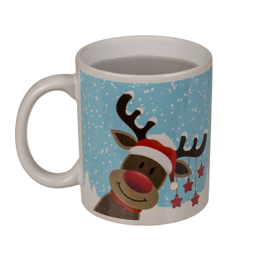 Керамична чаша с коледен мотив Reindeer, 330мл. С термоефект, цветът на носа на елена се променя в зависимост от температурата на напитката в чашата.