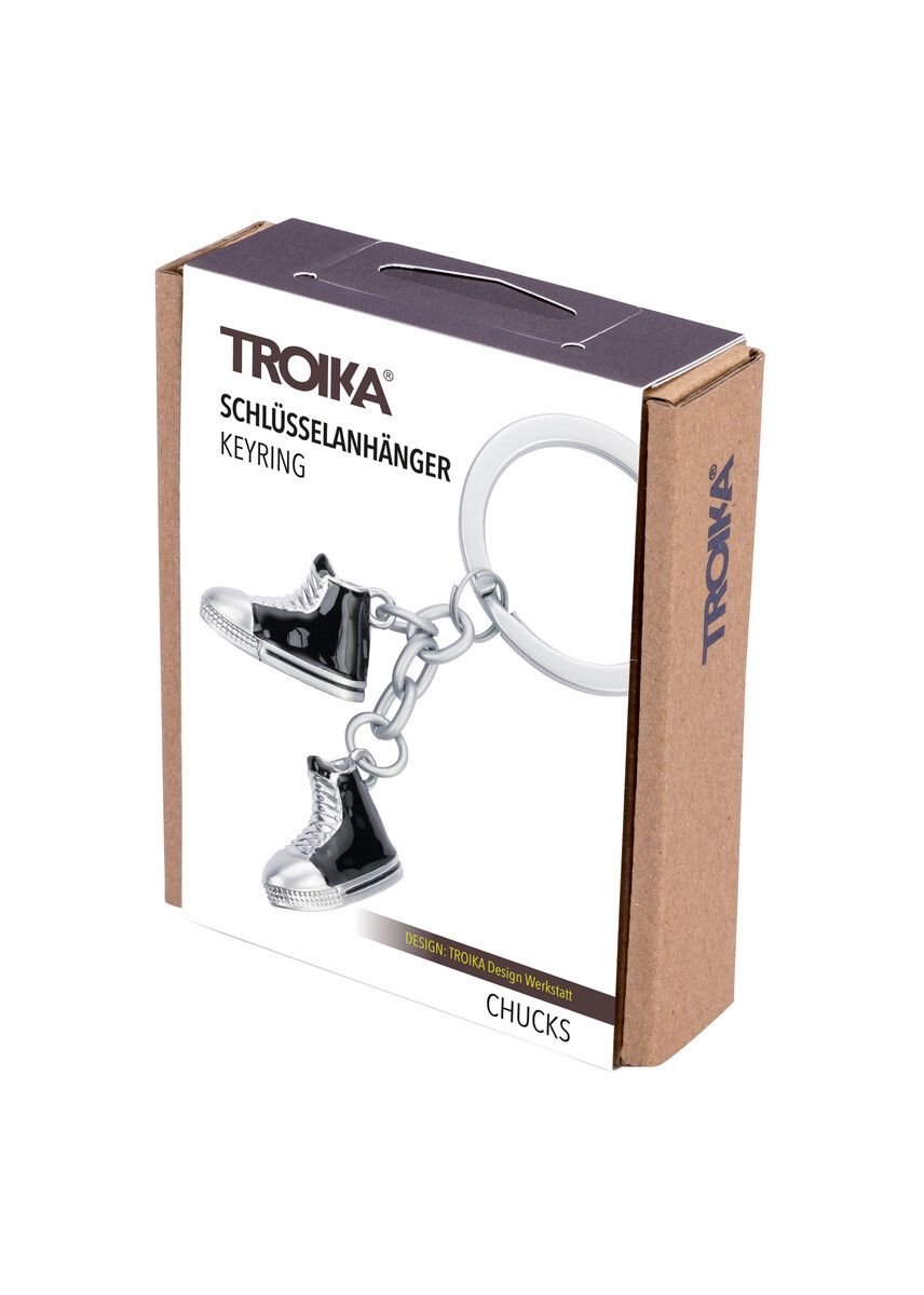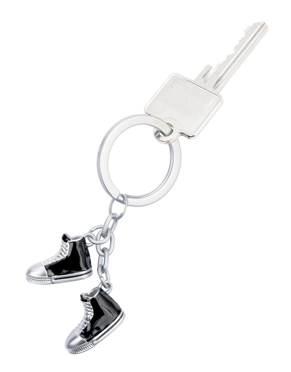 Ключодържател с 2 украшения, обувки за свободното време "CHUCKS", лят метал / емайл, мат, черен / сребрист цвят.