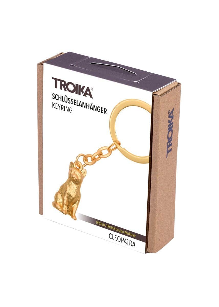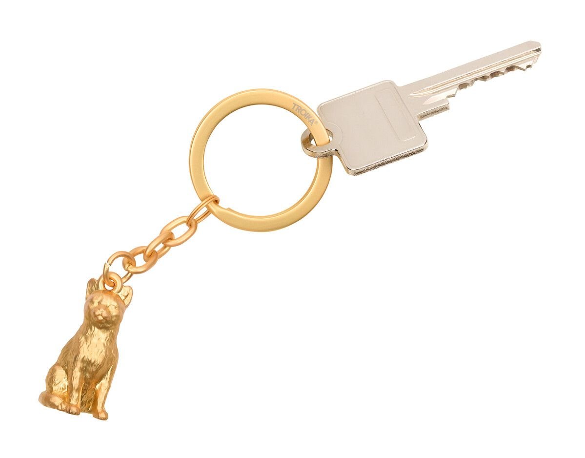 Ключодържател във формата на котка, метална отливка, мат, златист.