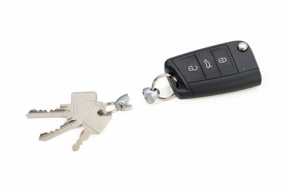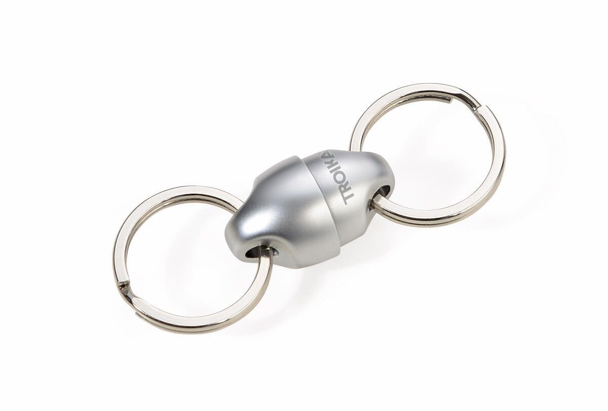 Ключодържател, състоящ се от 2 магнитно свързани отделни части за лесна организация на ключовете, силен магнитен ефект, теглителна сила прибл. 2кг, лят метал, мат, сив.