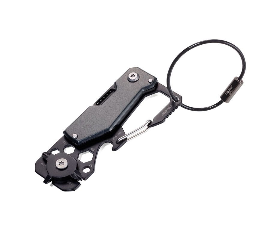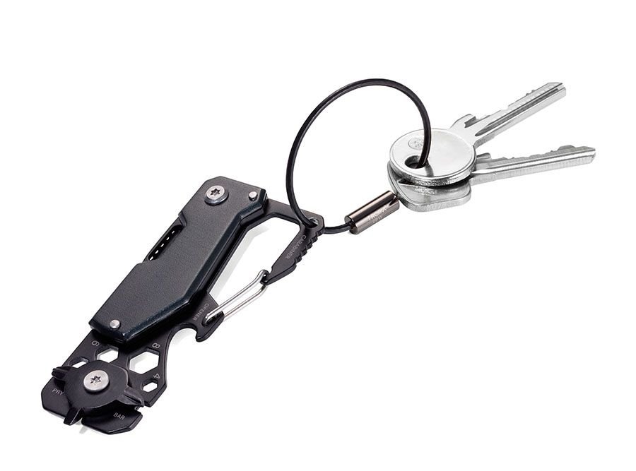 Мини инструмент с 10 функции, нож, ключодържател с карабинер, отварачка за бутилки, 3 отвертки (2 Филипс, 1 права), гаечен ключ (4 размера), неръждаема стомана/алуминий, цвят черен/титан