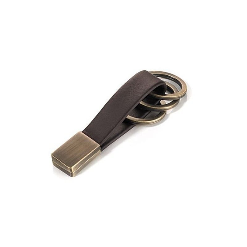 Ключодържател TROIKA, тъмнокафава кожа и метал състарено злато, 3 халки и закопчаване