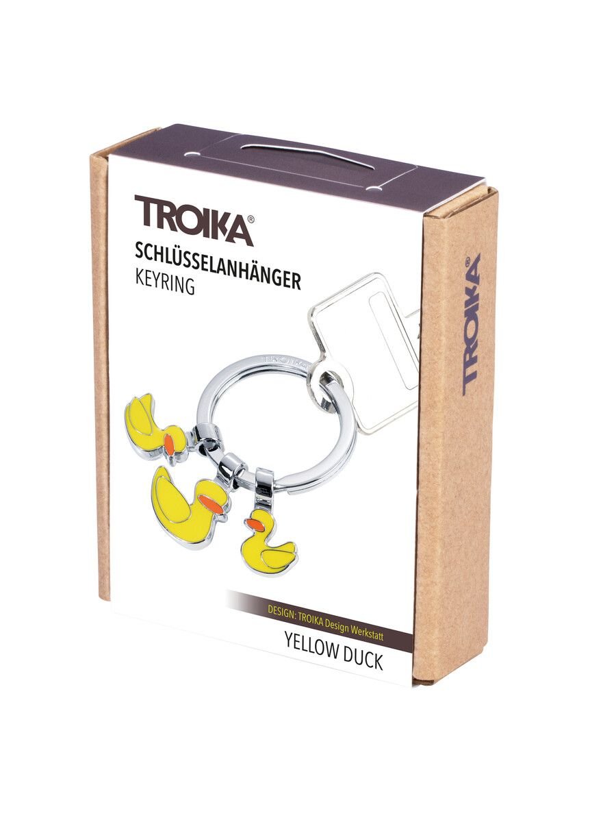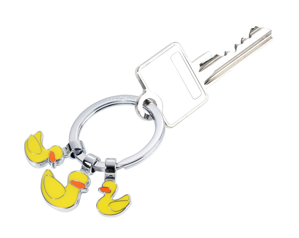 Със своята жива и наситена жълта окраска, този ключодържател не само е практичен аксесоар, но и излъчва весело и приятно настроение. Той е подходящ за всеки, който обича уникални и забавни аксесоари. С три украшения, този ключодържател представя трите патета по един забавен начин. Изключително красива и приятна изработка на аксесоаро. Един от най-сполучливите и страхотни модели ключодържатели на немската марка Troika.