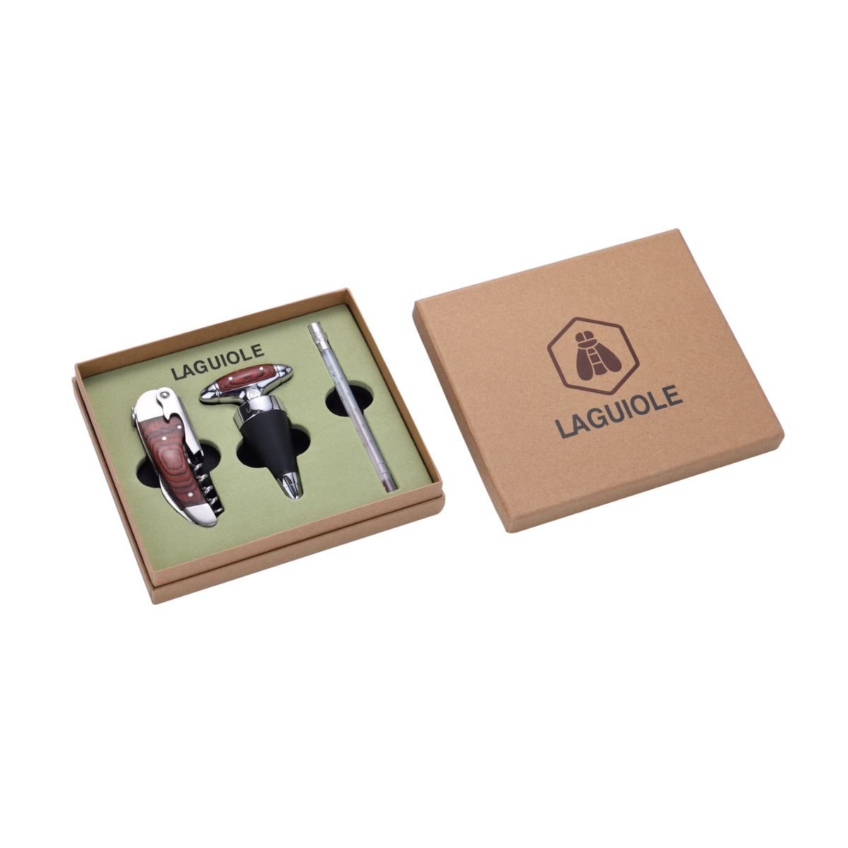 Комплект за вино Laguiole от три части в подаръчна кутия, изработена от рециклирани материали.